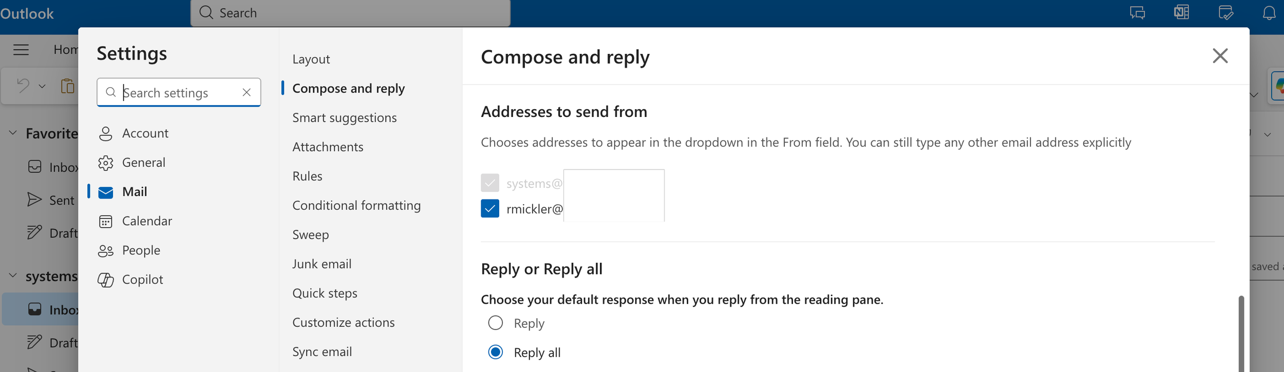 Now, have the user compose a new email in OWA. The From Field should allow a down-select on the check boxed aliases.